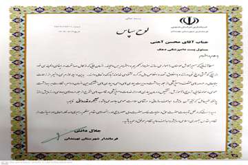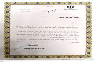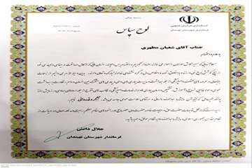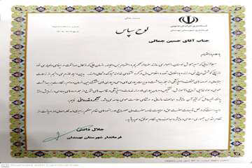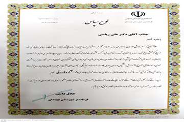 در لوح سپاس اهدایی توسط  فرماندار به همکاران این شبکه این چنین آمده است:
