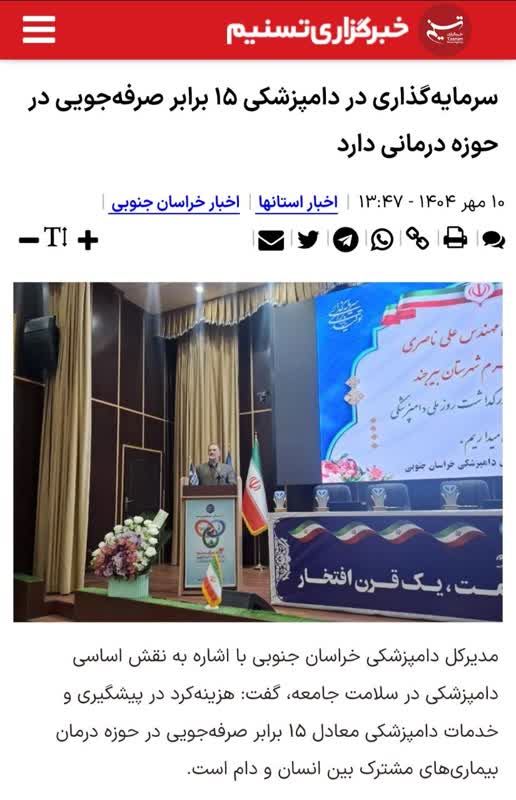 مراسم گرامیداشت هفته دامپزشکی در استان خراسان جنوبی امسال با حضور ریاست محترم  سازمان دامپزشکی کشور،استاندار محترم  خراسان جنوبی ،فرمانداران گرامی  شهرستان های مختلف و نماینده مردم شریف بیرجند خوسف درمیان در مجلس شورای اسلامی و فرمانده محترم  انصار الرضا(ع) و ریاست محترم  سازمان جهاد کشاورزی و جمعی دیگر از مسئولین استانی و کارکنان بخش های دولتی و خصوصی و تولید کنندگان محترم و ..... برگزار شد .