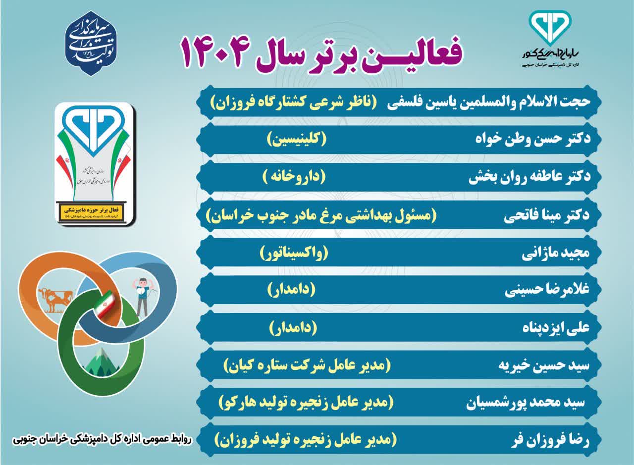 در پایان مراسم نیز از کارکنان نمونه و فعالین برتر دامپزشکی استان با حضور مسئولین تقدیر به عمل آمد.