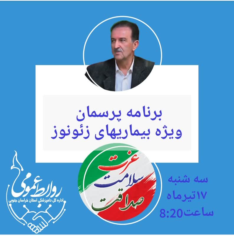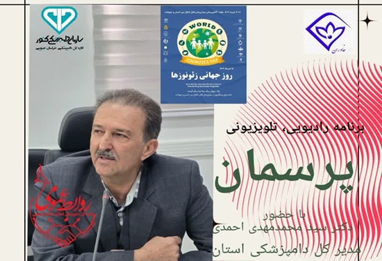 برنامه پرسمان با محوریت روز جهانی زئونوز ( بیماریهای قابل انتقال بین انسان و حیوانات) خواهد بود و همین بهانه ای است تا مدیر کل دامپزشکی استان پیرامون این روز با هم استان های عزیز سخن بگوید .