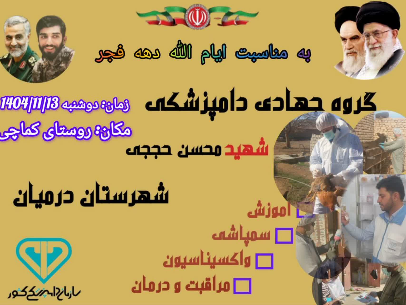 محمدزاده افزود: کار در دامپزشکی زمان و مناسبت نمیشناسد و در تمام ایام سال این خدمات با افتخار به مردم عزیز داده میشود ولی در مناسبت های خاصی از جمله دهه فجر و اعیاد قربان و غدیر و سایر مناسبت های ملی و مذهبی ، این خدمات به صورت اردوهای جهادی انجام میشود تا علاوه بر خدمت بهتر در دور افتاده ترین مناطق به هم استانی های عزیز ، سایر مسئولین در شهرستان ها و اقشار دیگر مردم نیز از گستردگی و خدمات دامپزشکی اطلاع ،و سبب افزایش آگاهی به نقش حساس و حیاتی دامپزشکی شوند.