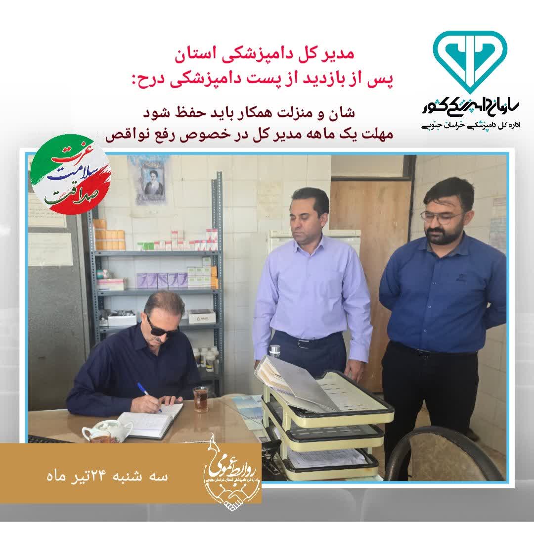 بازدید مدیرکل دامپزشکی خراسان جنوبی از پست دامپزشکی درح